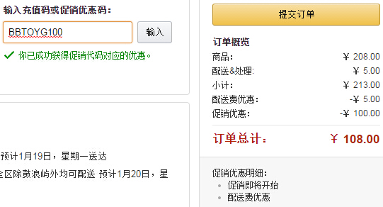 亚马逊目前208元在售,liuzhuni.com的朋友们结算的时候可以输入优惠码:“BBTOYG100”减免100元,实付108元包邮到手,近期不错的价格拉;主要是无需囤货;
