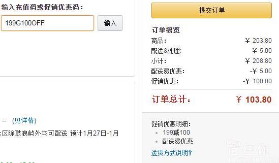 在订单结算页面输入优惠码“199G100OFF”立减100元,实付103.8元包邮,差不多50元一箱了,非常难得的价格!可做为年货!