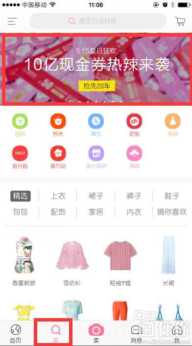 还可以领张10-10无限制券,下载美丽说APP,自行选择登陆方式,进入买频道看到5.15夏日狂欢进去,看右侧分享得10元。