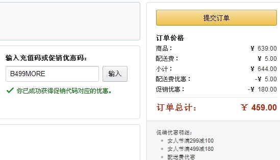 亚马逊目前639元在售,结算时可使用优惠码“B499MORE”减180元,最后实付459元即可包邮到手,刷新历史新低价,同款京东商城699元,易迅网749元,亚马逊价格优势明显,需要的朋友可以入手。