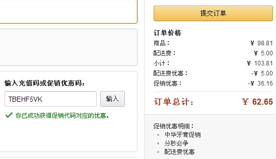 亚马逊目前降至61元参与Z秒杀,本身价格就不错,我们还可选择和21.4元的魔丽迅白冰极薄荷味牙膏 100g*2支进行凑单,两样一起加入购物车,结算时输入优惠码“TBEHF5VK”可总金额再减免20%,实付62.55元到手8支牙膏,相当于加1.6元买到21.4元的牙膏了,折合下来每支不到8元,其他商城每支13元左右。