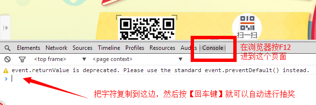 2、然后鼠标点击如图所示的【console】再将小编下面列出的字符复制进去(CTRL+V)回车一下就可以啦,每天100次,可以多弄些号,你懂的,不明白的加Q群答疑,8群:371901947,提示错误的话关掉浏览器,再重复操作一次