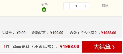 国美在线目前2088元在售,加入购物车再减100元,最后1988元包邮到手,刷新历史新低价,同款1号店2299元,京东2499元在售。