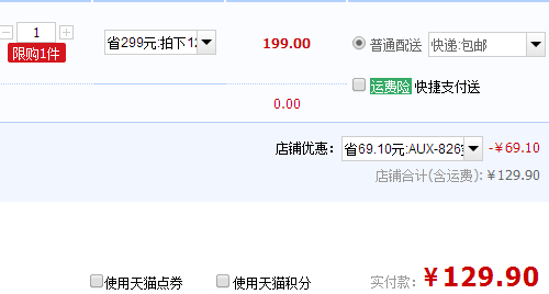 天猫商城目前199.9元在售,拍下到购物车立减70元,实付129.9元,做为14年新品做到129元是好价格了,京东那边还一直坚挺在199元,有需要的朋友可以入手,看起来特价就今天了。