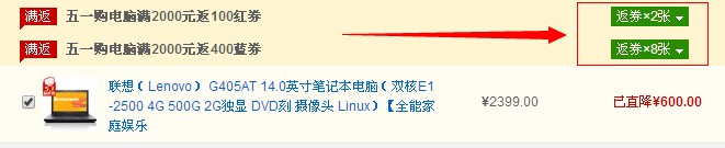 国美在线目前2399元在售,近期不错的价格,加入购物车还可再返50元红券*2张、50元蓝券*8张,折合相当于2299返400蓝券,同款其他商城普遍2590元以上。
