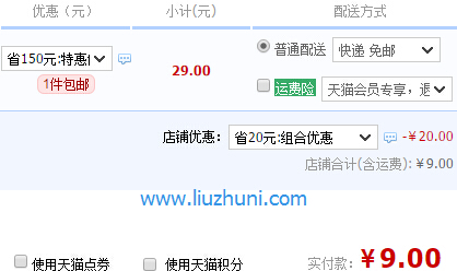 天猫唐狮旗舰店目前29元在售,虽然页面显示有运费,但是拍下其实是包邮的,这个留住你已经亲测了;并且T3-T4用户可用10元积分兑换20元现金券,实付9块钱包邮到手,这个价格手慢无了吧。