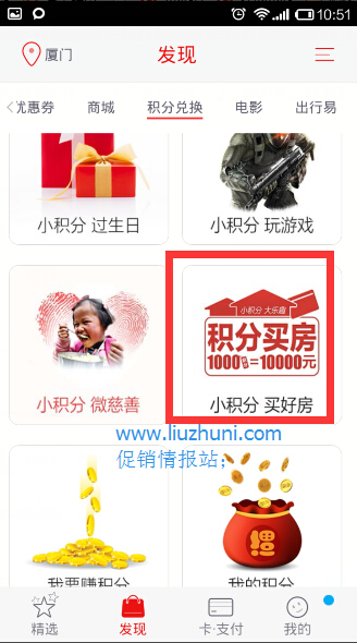 首先下载招行手机APP,然后进去发现频道,再来到积分兑换,再来到积分买房;就可以看到了;