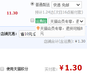 天猫商城目前11.3元在售,本身就是白菜价了,留住你的朋友们产品页面右侧点自己头像, 进入我的特权10积分领10元优惠券;