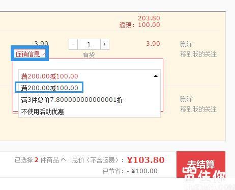 我们和4块钱的妙洁一起加入购物车,实付103元包邮到手。