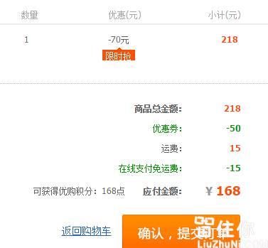 优购网目前218元特价中,本身就是新低价了,还支持使用留住你提供的优购50元现金券