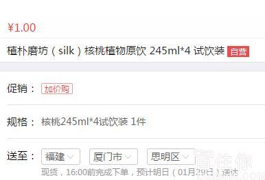 植朴磨坊是蒙牛和雅士利背景,算是靠谱,喜欢的可以考虑购物捎带;虽然说是试喝的,但是245ml也不会很小了;因为之前留住你有推荐过,普遍朋友表示核桃的更好喝,当然口感是看个人的了;