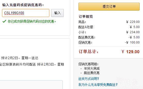 亚马逊目前229元在售,结算的时候输入优惠吗:“CSL199G100”即可减免100元,实付129元包邮到手,近期不错的价格。