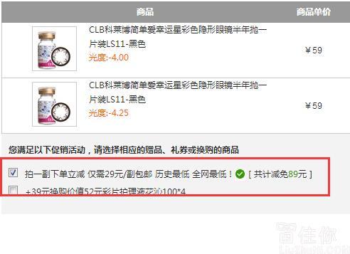 可得眼镜目前59元在售,拍两片结算会自动减免89元,实付29元包邮到手,这个价格到手一副也是比较划算的了;
