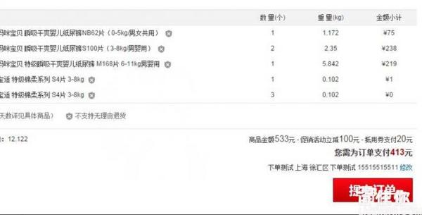 并且结算支持使用100-20优惠券,实付413元包邮到手,适合刚好孩子要出生,为孩子准备尿裤的爸爸妈妈;