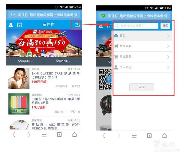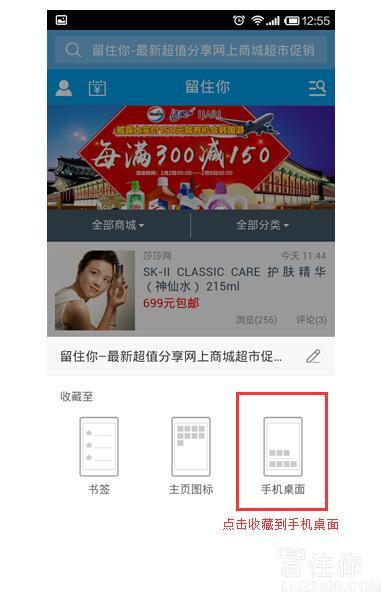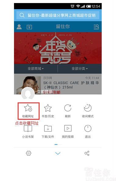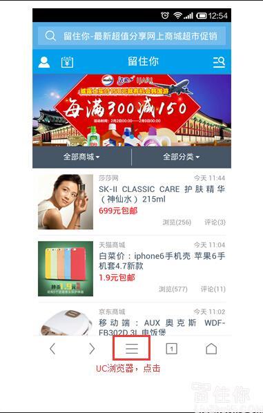UC浏览器下,如何将留住你触屏版放到桌面: