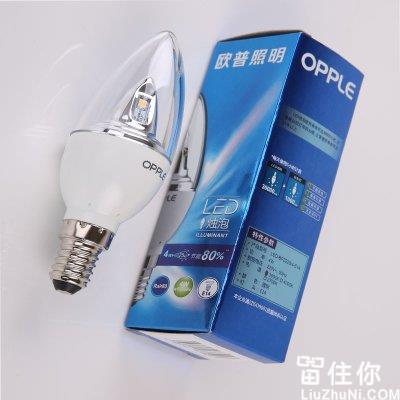 3、欧普照明LED蜡烛泡尖泡球泡水晶灯专用泡4W 6支装,黄光E14小灯头款暖白光E14小灯头款,也都降到35元,折合6元一个。