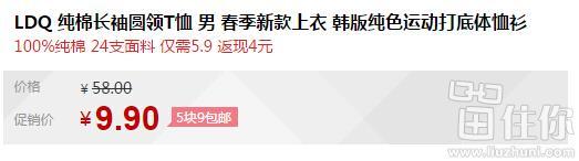 白菜价:LDQ 纯棉长袖圆领T恤 9.9元包邮(好评返4)