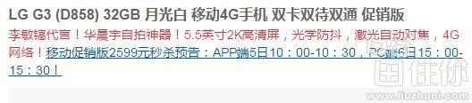 LG G3 (D858) 32GB 移动4G手机 (2K屏、激光对焦) 2599元包邮
