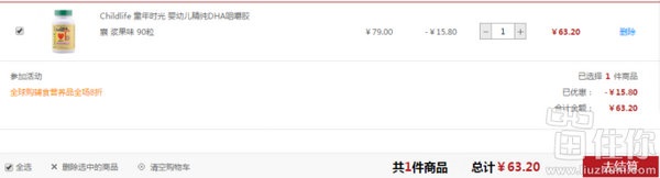CHILDLIFE 童年时光 婴幼儿精纯DHA咀嚼胶囊 90粒 63元(79-16)