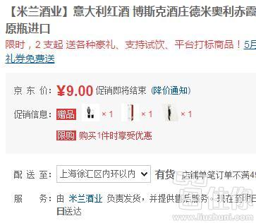 京东米兰酒业目前来到9块钱,差不多是日常价格的2折,白菜的咯,限购1件,单买10块钱运费,不过送了好多赠品,例如开酒器、倒酒器等;