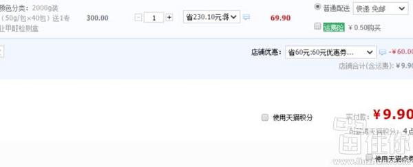 天猫快活林官方售价69.9元,留住你的朋友们还可领取专属的60元券,实付9.9元包邮到手4斤,做为2000g这个价格还是划算的;