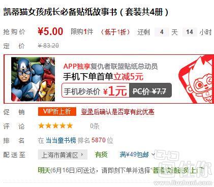 刚刚发现居然成了当当 vip 4.9元就可以了