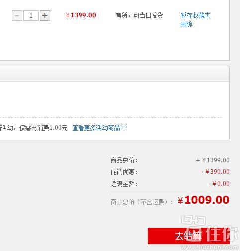 易迅网1399元,本身低价,加入购物车结算后,是1009元,其他商城1800左右,对比刚才的京东更划算!