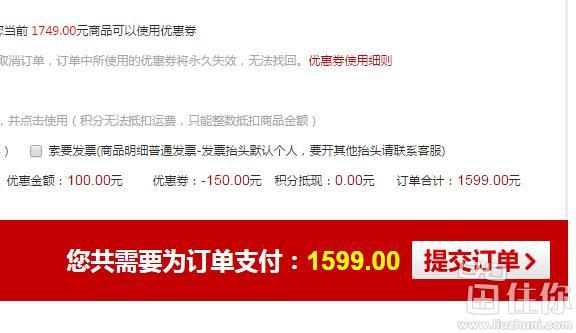 健一网1849元在售,加入购物车可减免100元,然后还可在这个页面领取150元优惠券,领取优惠券后在个人中心复制出来,结算的时候输入,实付1599元到手!