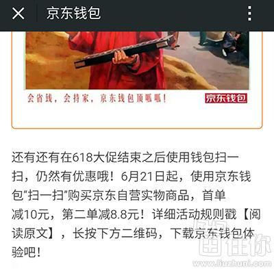 消费提醒: 6月21日起,京东钱包 扫一扫 新用户减10元/老用户8.8元