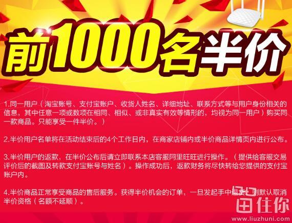 聚划算10点开启89元特价,前1000名可返现44.5元,那么相当于半价到手,非常不错的价格,现在在外面随便买一台4个线的都要贵的多了;1000名的数量对于路由器来说,压力不大;