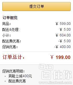 亚马逊目前599元在售,可在价格下方领取400元有优惠券,下单实付199元包邮,作为正装鞋价格还是可以的,网友评价也不错。