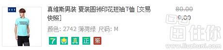 男士短袖T恤衫,聚划算真维斯旗舰店19元在售,还可领取10元无门槛优惠券,结算时用券,实付9元包邮,两色可选,S、M码。