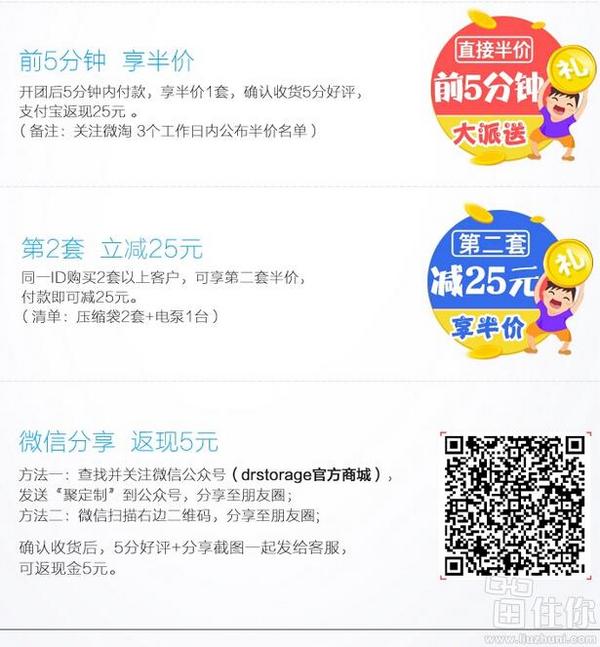 10点~10点5分:收纳博士 超厚真空压缩袋12件送电泵 49.9返25元