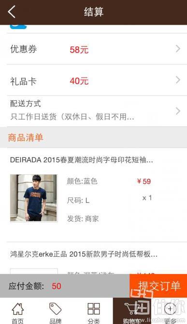 两双鞋子99+衣服59 -58优惠券卷-50礼品卡-10手机首单=40元