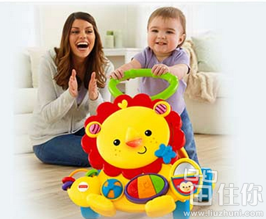 费雪这款狮子学步车最近比较少做活动了,外形非常可爱,共有两种游戏模式:坐着玩和站着玩;