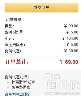 亚马逊目前售价99元,参加99-30活动(页面价格下方可领取),实付69元包邮,价格刚好;