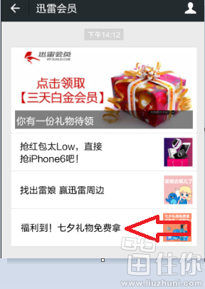 现在拿起你的手机,打开微信,关注微信公众号“迅雷会员”,然后点击推送的“福利到!七夕礼物免费拿”,即可领取唯品会20元代金券;