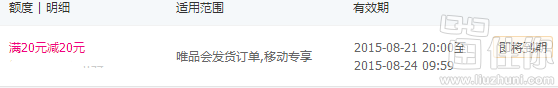 优惠券:唯品会 20元无限制券免费领