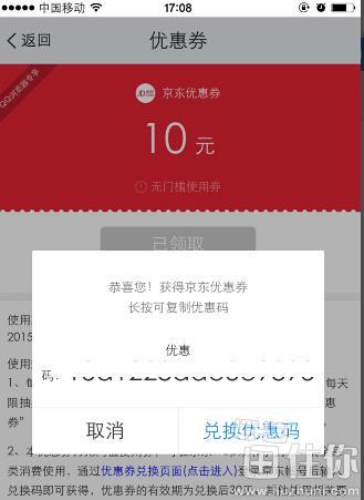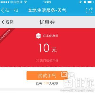 机会是5次,小编刚测试的话是2个号中了1个,爆料网友是1个号就中了,属于概率的,感兴趣的朋友可以尝试下,抽到后,把优惠码输入到京东京券兑换,即可绑定到账户;