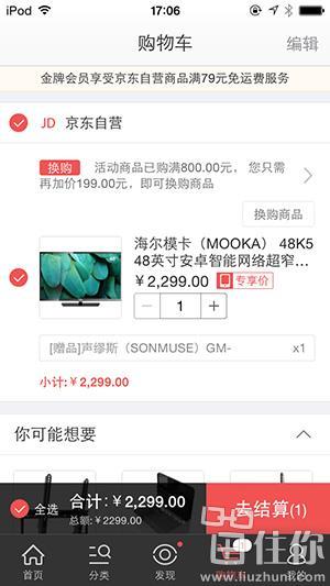 京东商城手机客户端2299元包邮,作为卧室电视刚刚好,同款易迅报价3799元,此前最低2399元左右。
