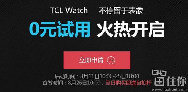 TCL出品么么哒手机后反响不错,目前也进入了智能手表领域,在26号会正式进行开售TCL Watch 智能手表,然后呢目前可以→免费进行申请试用,合计为10台的TCL Watch还有30名的活塞耳机;