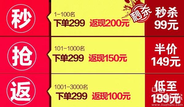 聚划算今日首发新品,价格为299元,1~100名返现200元,这个我们就PASS了,但是101~1000名返现150元以及1001~3000名返现100元,这个还是相对比较容易的;