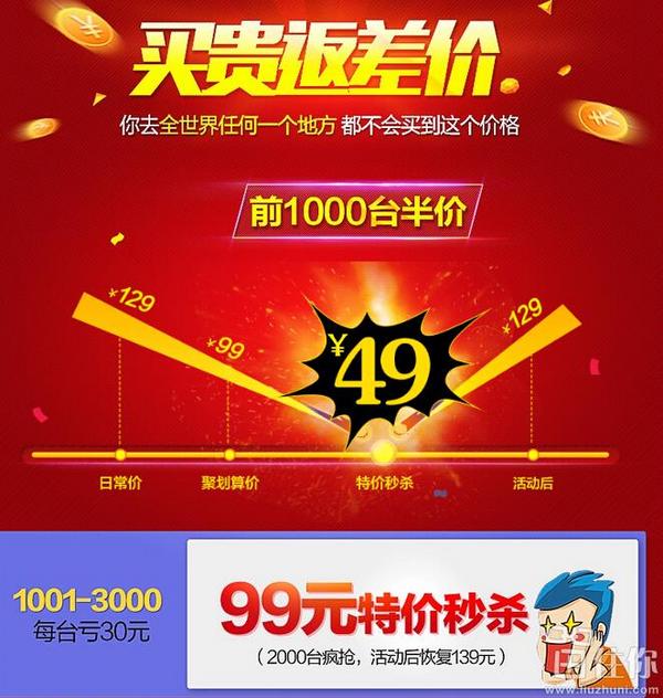 天猫旗舰店10点开启99元的特价,在前1000名可返现50元、这样最低的话是49元到手了,价格不错,官方旗舰店返现也相对靠谱,而且这个属于家电类的,数量在1000的会比较好抢些;