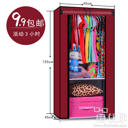 简易衣柜,9.9元包邮,租房党必备,不过这款有点小,比较适合东西不多的男生,或者宝宝喔;