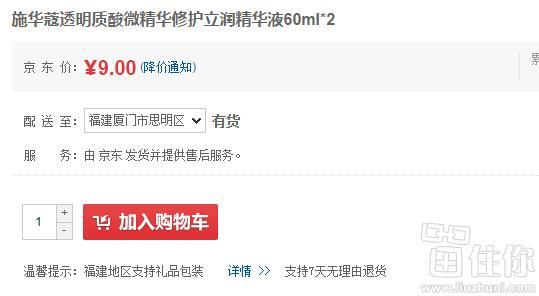 神价格:施华蔻 透明质酸 微精华修护立润精华液60ml*2瓶 9元(日常198)