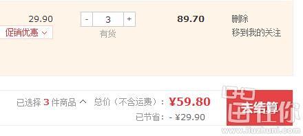 京东商城29.9元特价,还可参加满3免1活动,下单3件,满减后59.8元,折合19.9元一件,价格新低了,手口湿巾用途比较广。