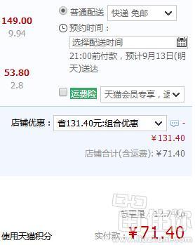可用之前推荐的华北满100减30优惠券,下单实付71.4元,北京地区可包邮,其他地区可能需要一定的运费。