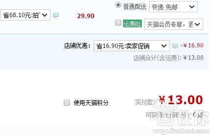 天猫商城目前29.9元在售,拍下后可减免16.9元,实付13元,而且可以包邮到手哈;