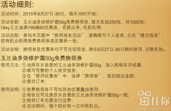 10点开始# 京东 玉兰油多效修护霜50g 免费兑换券