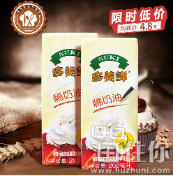 多美鲜 动物性淡奶油200ml,4.8元包邮,烘焙必备,比超市便宜多了;